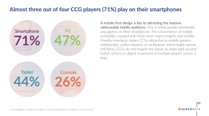 Digital collectible card games (CCGs) will earn $1.5B in 2018E. Almost three out of four (71%) of CCG players play on their smartphones, making a mobile-first design key to success.